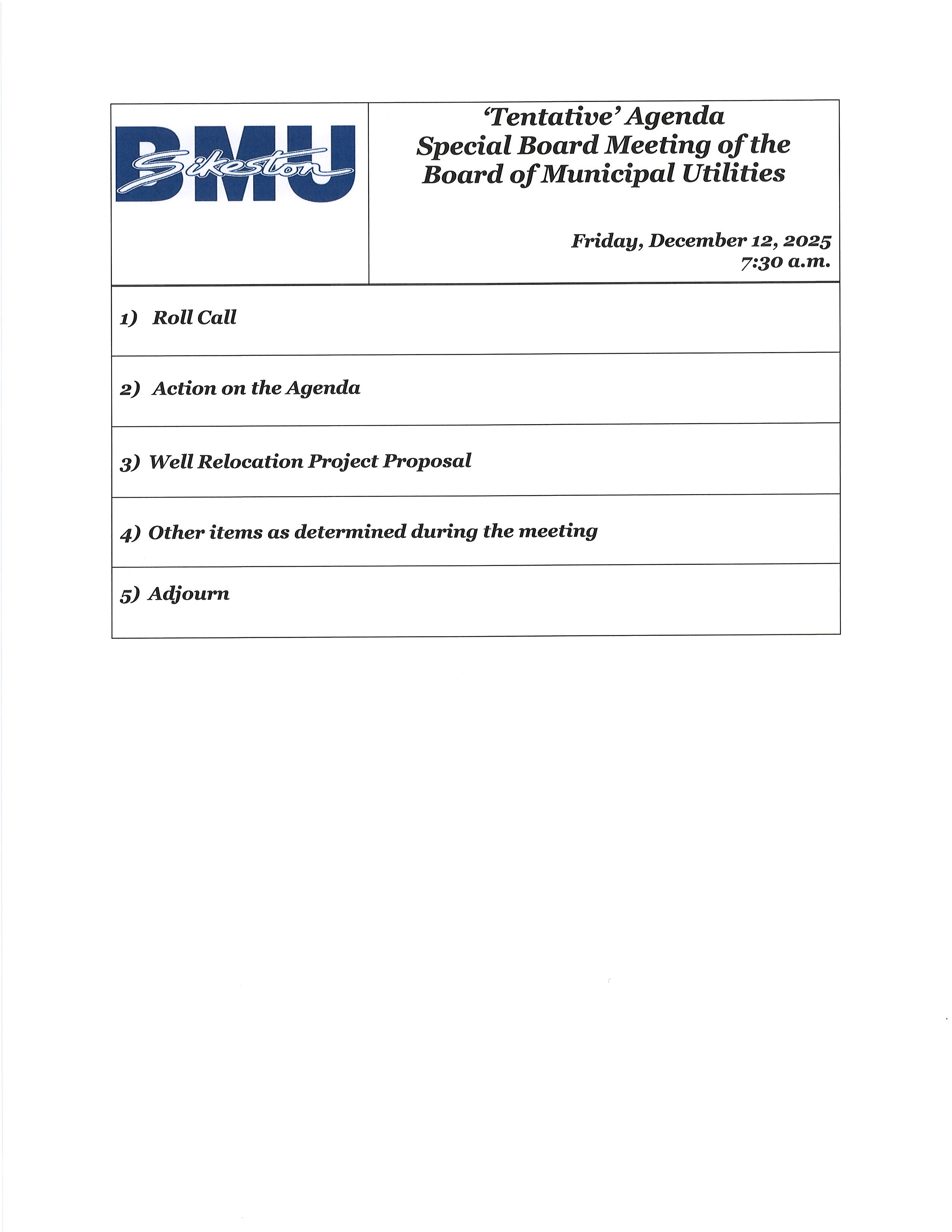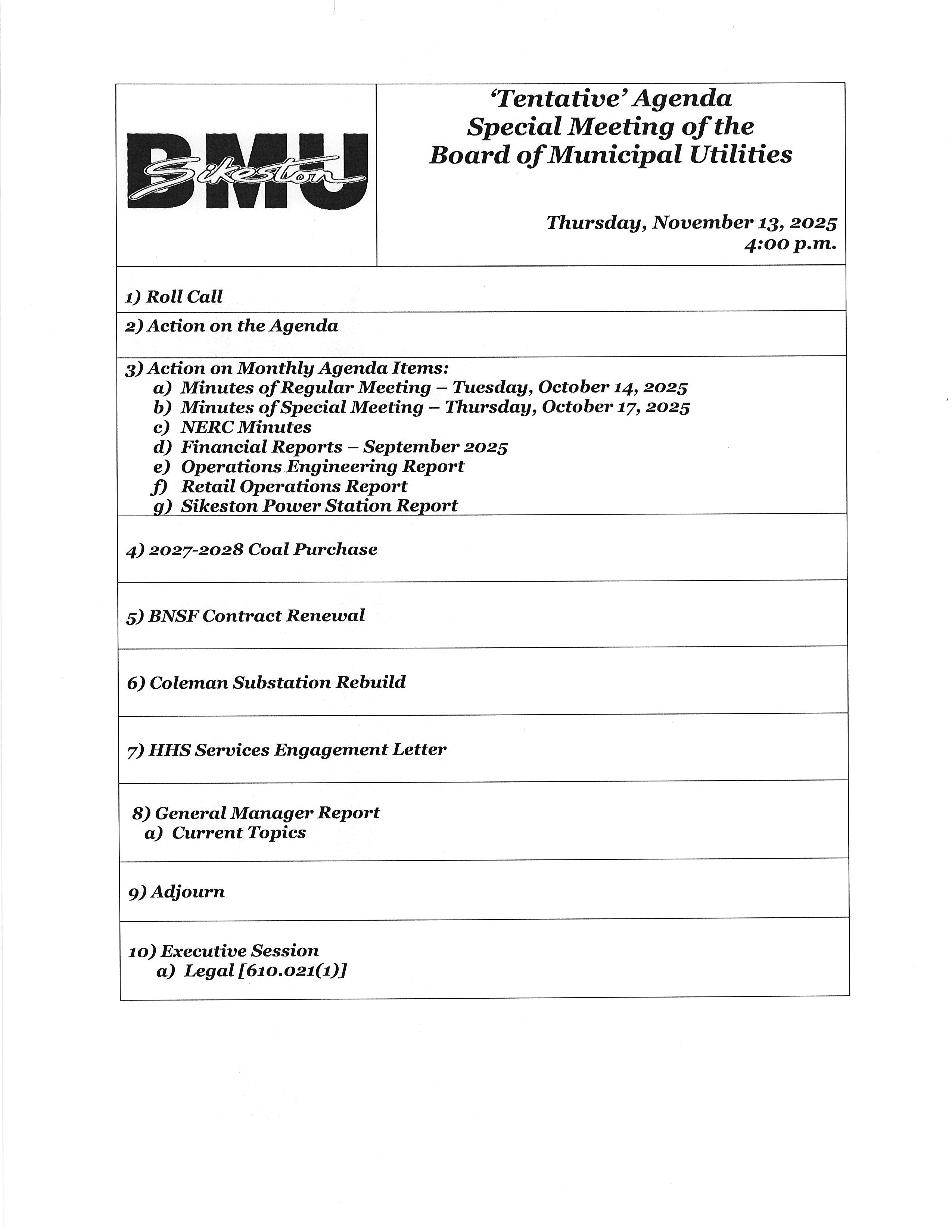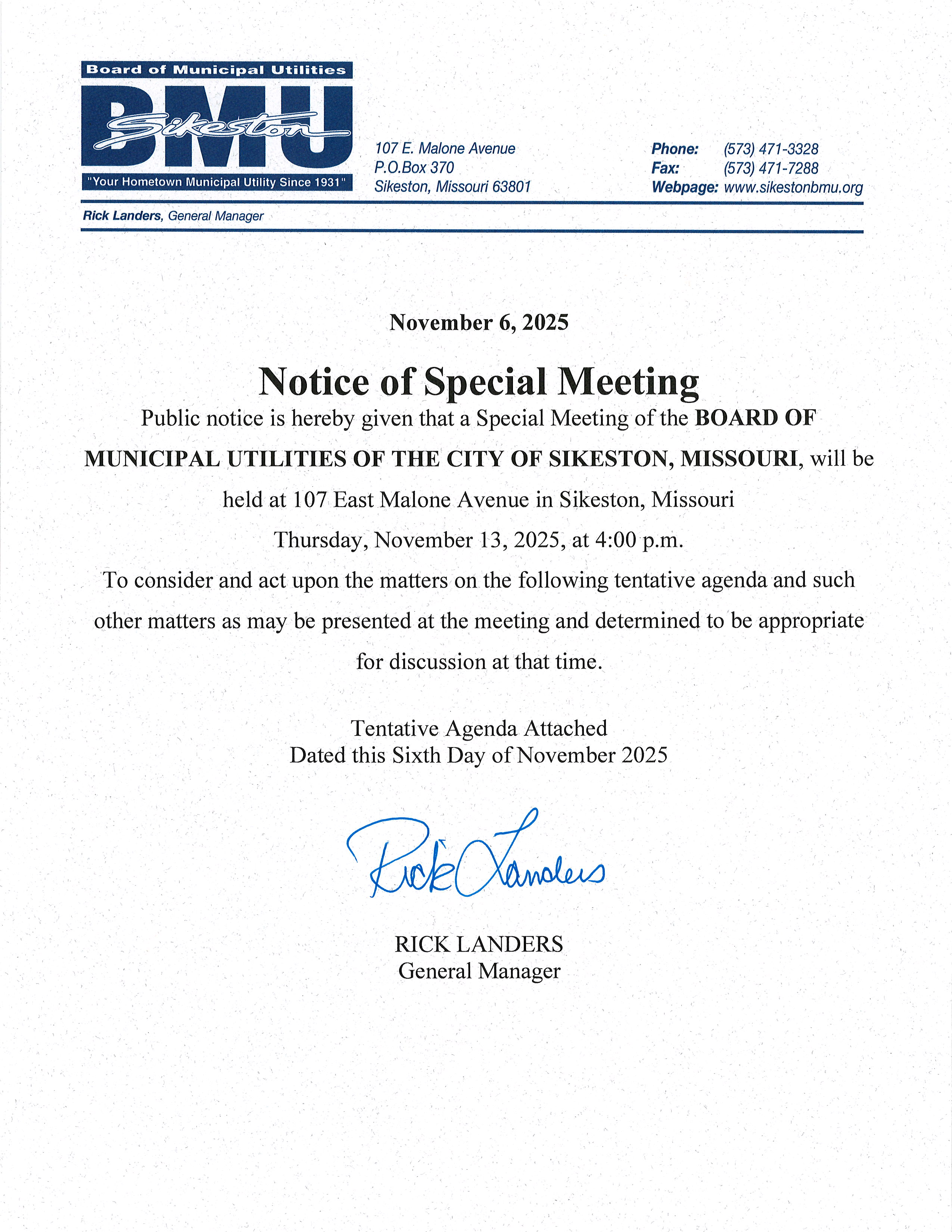 Sikeston Board of Municipal Utilities upcoming meeting notices and tentative agendas will be posted below.